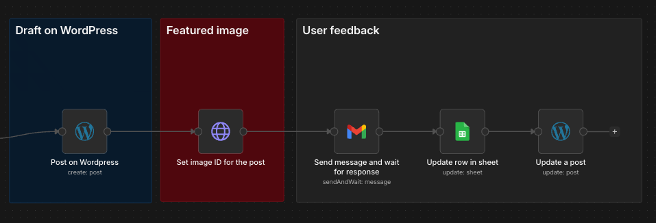 Denk aan een flow waarin nieuwe blogs of pagina’s automatisch worden omgezet naar meerdere social posts, afgestemd op verschillende platforms. Of aan een vaste set thema’s die periodiek wordt hergebruikt en gevarieerd, zonder dat iemand telkens opnieuw hoeft te schrijven.