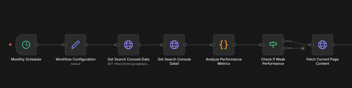 Met een n8n flow kun je dit proces automatiseren. Je haalt periodiek data op via de Search Console API en laat AI analyseren waar de grootste optimalisatiekansen liggen.